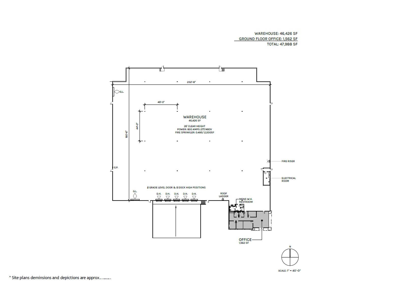 5 dock-high loading positions (3 with dock packages)