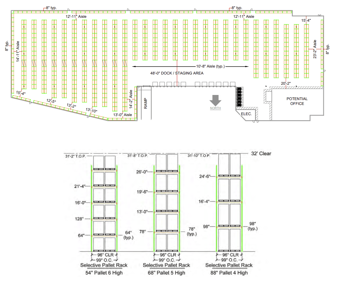 - 32-foot ceiling clearance • up to 40 feet at peak